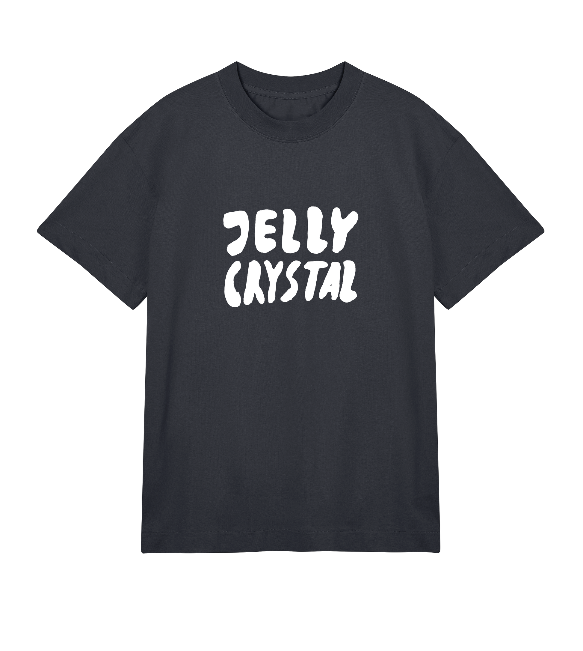 Off black Jelly Crystal t-shirt med stort vitt tryck på framsidan.