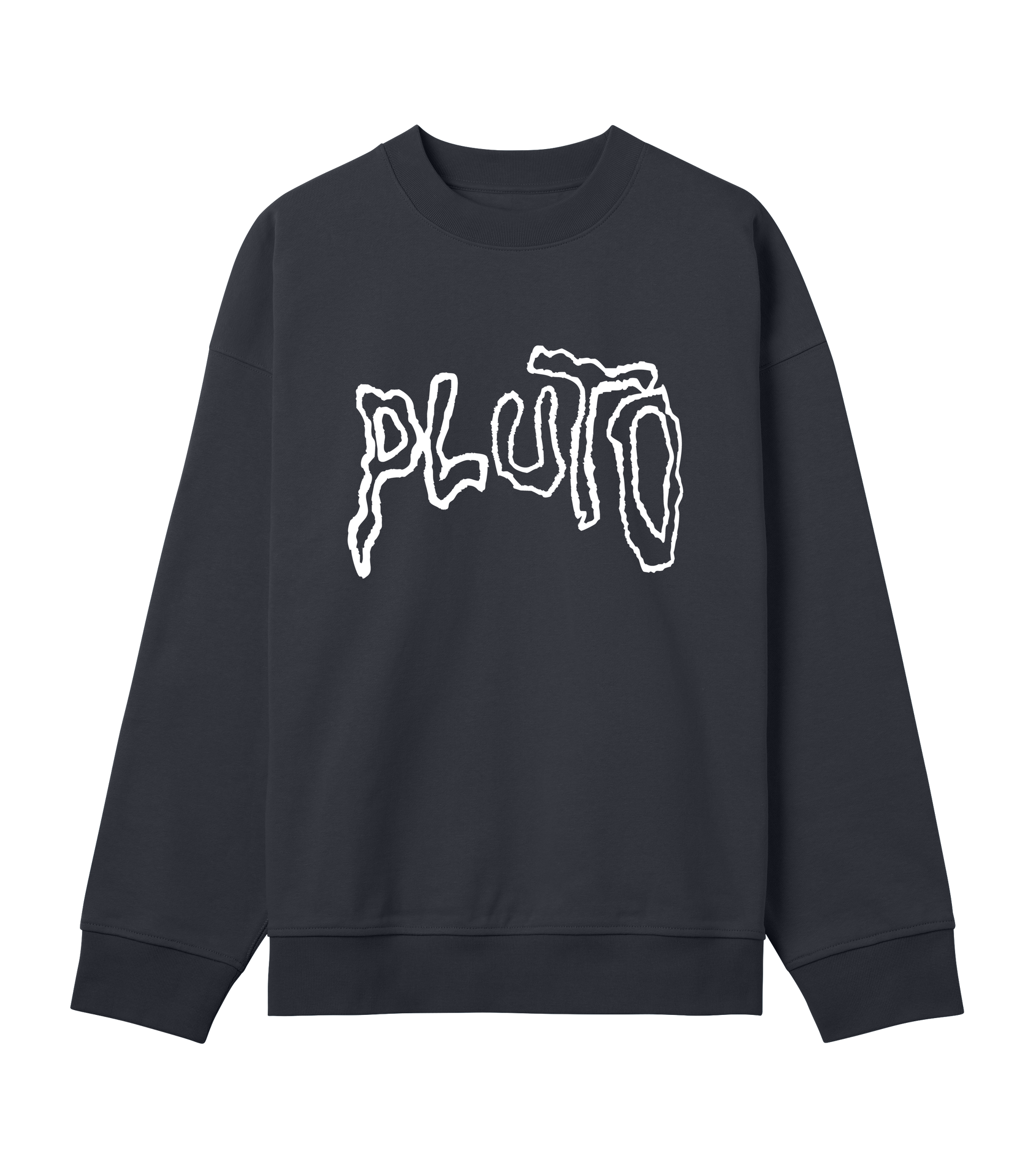 Off black oversized sweatshirt med PLUTO-tryck på bröstet.